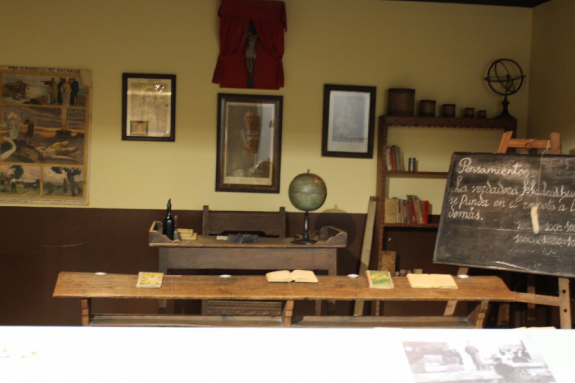 - Una exposición bien presentada y estructurada, que incluye reproducciones de aulas de diferentes épocas.