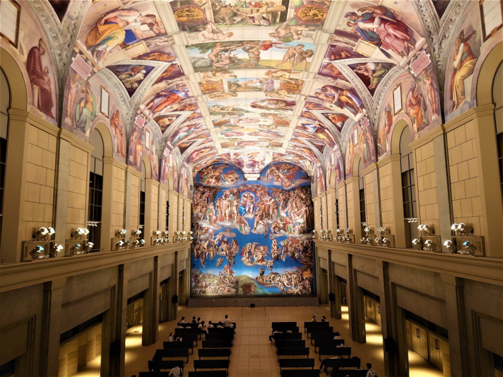 Experiencia fantástica: バチカンにあるシスティーナ礼拝堂と同じ造りを完全再現したホール。高さ16メートル、面積800平方メートルの天井には、旧約聖書にある「創世記」に基づく9つの場面が描かれ、正面には世界の終末を描いた「最後の審判」が構える。実物を完全再現しており、1300度で焼き付けた陶板画は半永久的に色褪せることはない。 ホールは2007年3月、美術館開館10周年の記念事業の一環として完成。ホール自体は開館時からあったものの、天井画の側面部である曲面を陶板で表現する技術が確立されておらず、天井部だけを再現した状態だった。 現在ホールは、来場者が鑑賞する以外にもイベントなどに活用されている。コンサートや国内外の学会、将棋や囲碁の対局、歌舞伎、結婚式など幅広い。2018年末の紅白歌合戦では米津玄師さんの生中継の舞台となり話題になった。 バチカンにあるシスティーナ礼拝堂と同じ造りを完全再現したホール。高さ16メートル、面積800平方メートルの天井には、旧約聖書にある「創世記」に基づく9つの場面が描かれ、正面には世界の終末を描いた「最後の審判」が構える。実物を完全再現しており、1300度で焼き付けた陶板画は半永久的に色褪せることはない。 …