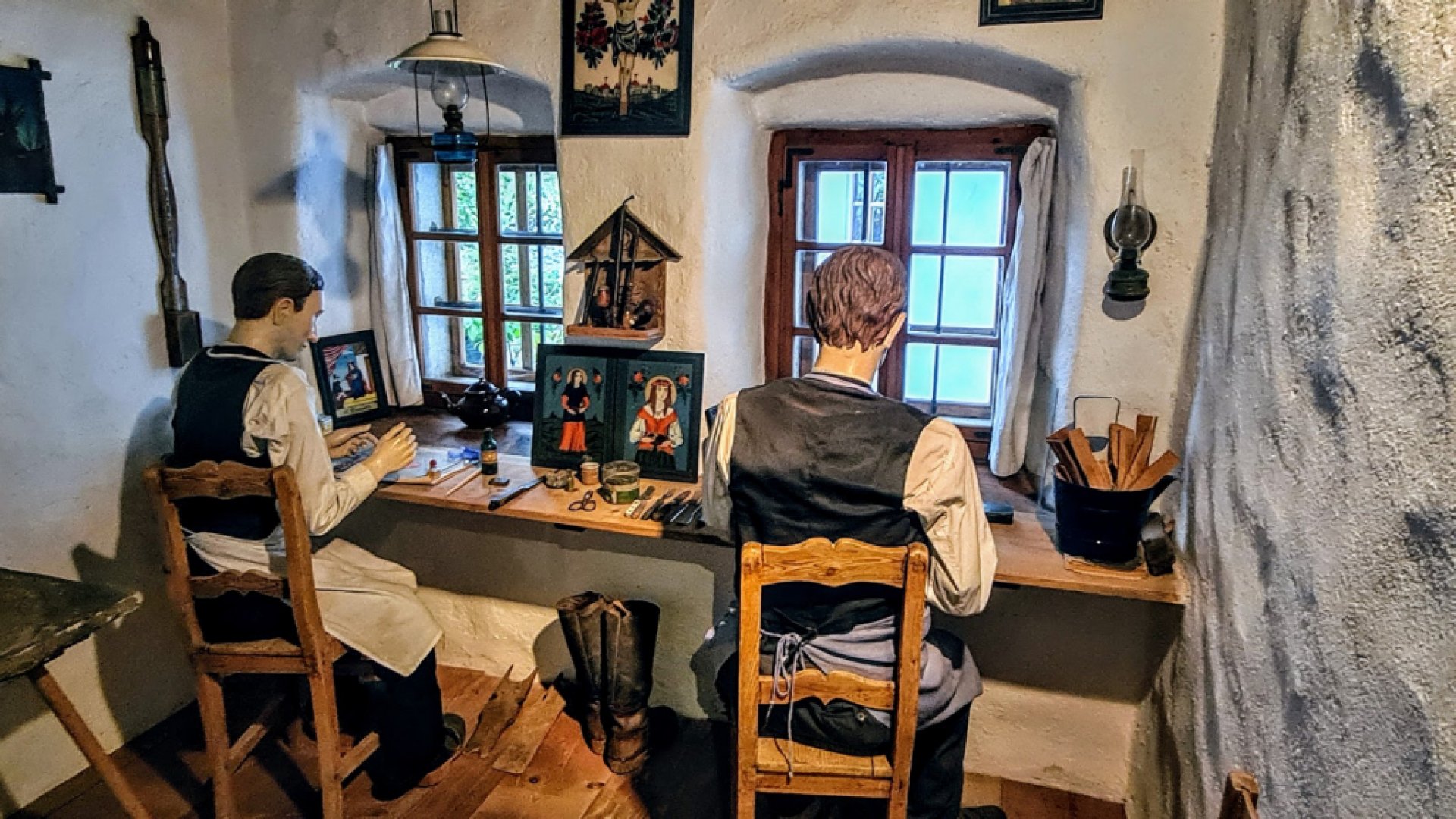 Experiencia fantástica: Además de los hermosos antiguos cuadros de vidrio pintados con su perfecta armonía de colores, también se pueden admirar y comprar cuadros de vidrio pintados por niños. El patrimonio cultural inmaterial se transmite a la juventud. También se puede hacerse miembro del club.