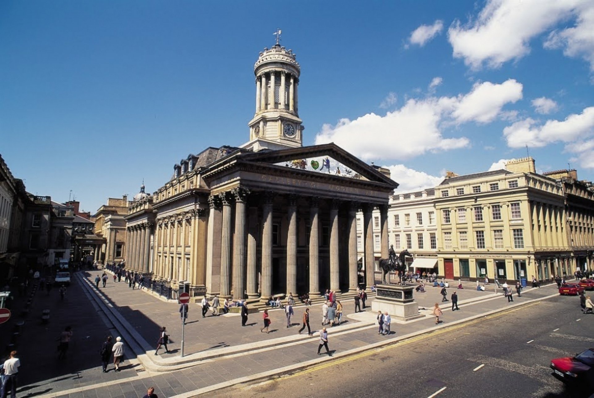 La Gallery of Modern Art, situada en el corazón de Glasgow, es un museo de acceso gratuito que ofrece una experiencia única en un edificio arquitectónicamente impresionante del siglo XVIII. Conocida por su icónica estatua del Duke of Wellington adornada con un cono de tráfico, esta galería se ha convertido en un punto de referencia para los amantes del arte contemporáneo.