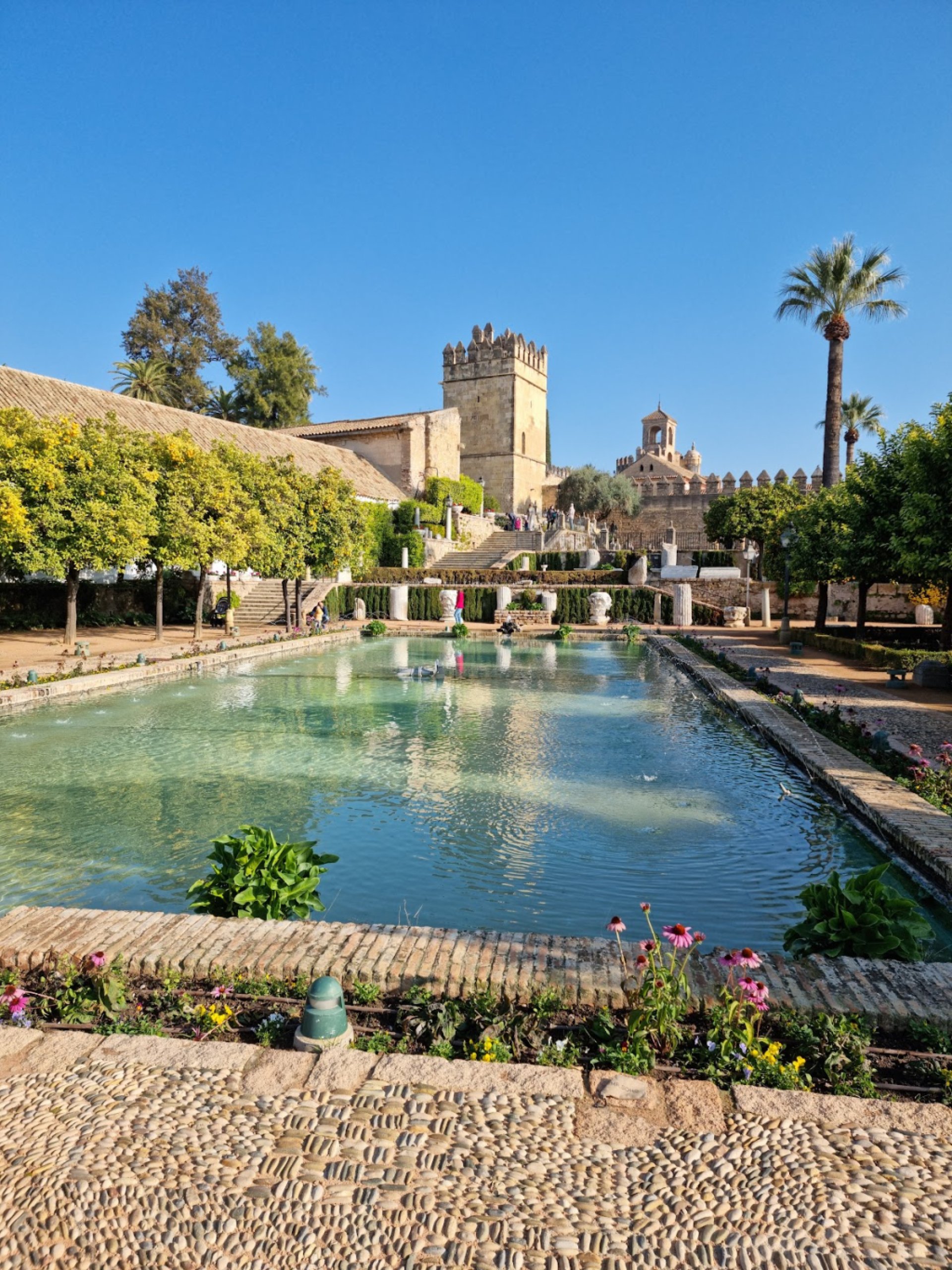 Experiencia fantástica: Sin duda alguna, es una visita imprescindible en tu viaje a Córdoba. No solo por viajar en el tiempo sino por ver la unión de varias culturas. En el interior del alcázar, se pueden contemplar varios objetos de distintas épocas, destacando numerosos mosaicos de la época romana localizados en la Plaza de la Corredera. Desde lo alto de la Torre a la que se tiene acceso, se puede tener una vista panorámica increíble al centro histórico de Córdoba y, por supuesto, contemplar la gran Mezquita-Catedral, además de a las Caballerizas Reales (en nuestro caso, única forma de verlas ya que se encontraban en mantenimiento). Pasear por sus grandes jardines (incluido el del patio mudéjar) te llena de paz. 100% recomendable y encima la entrada, muy económica, puede sacarse de forma conjunta con los baños califales!!