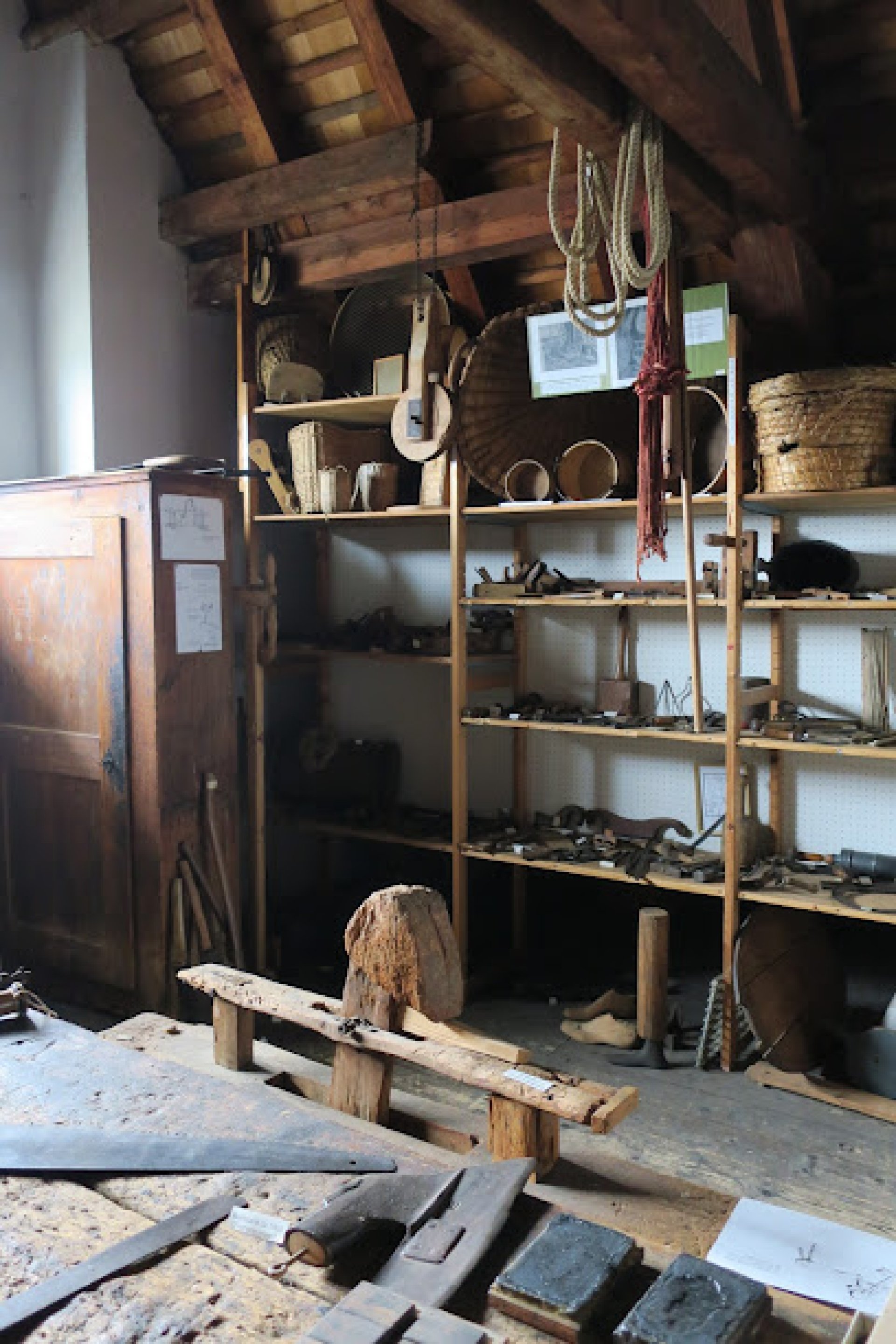 Auf Gestellen, entlang den Wänden, in Gängen und Winkeln und auch von der Decke herunterhängend finden sich Gegenstände aus vielen Jahrhunderten und aus den verschiedensten Lebens- und Arbeitsbereichen der Dürntner Bevölkerung. Sie sind Zeugen vom Haushalten, dem Bauernstand, der einst so mächtigen Textilindustrie, aber auch vom Familienleben, den religiösen Bräuchen und der Schule.