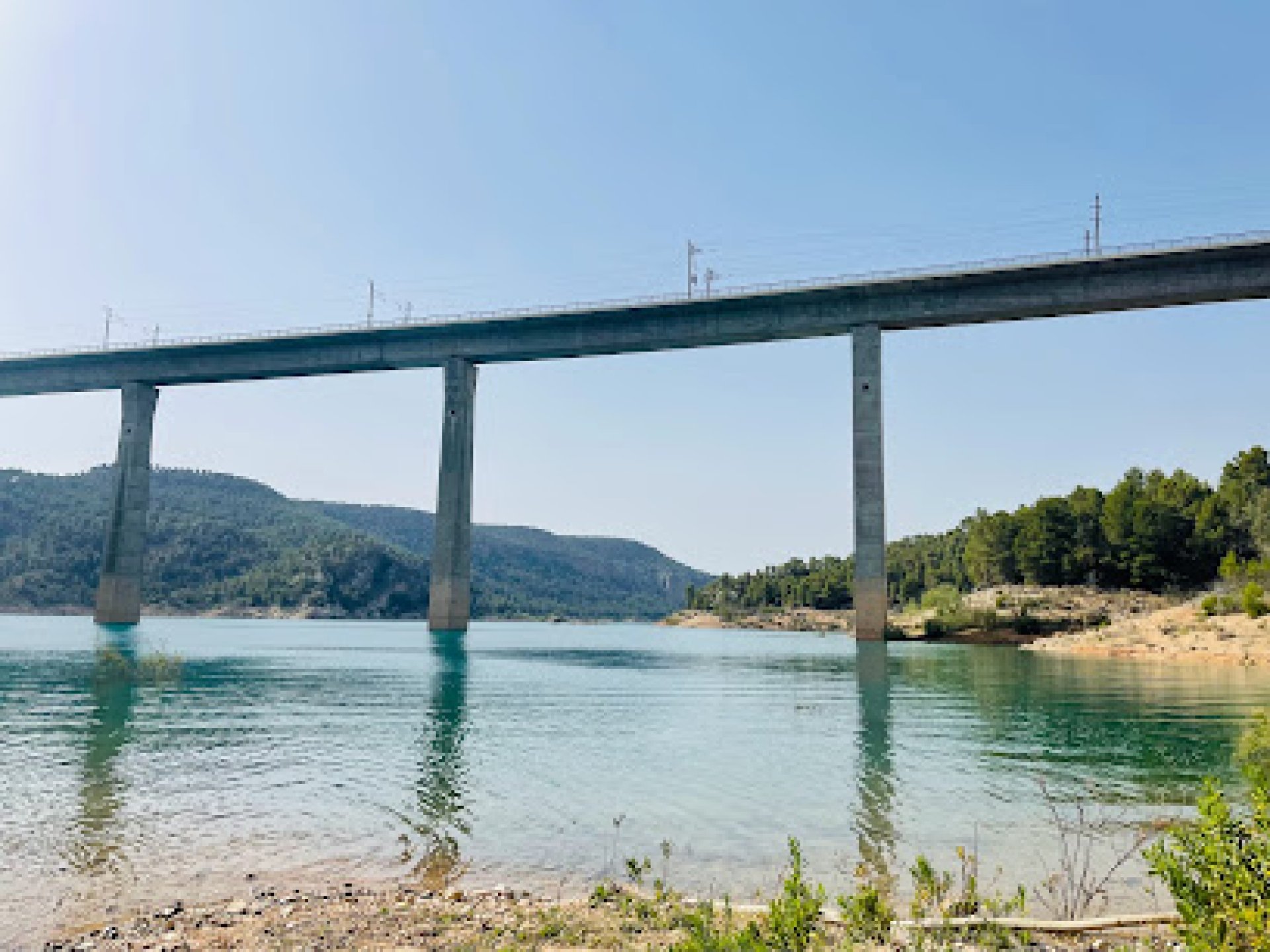 Experiencia fantástica: Un embalse atravesado por una carretera a3 de valencia entrando a Cuenca