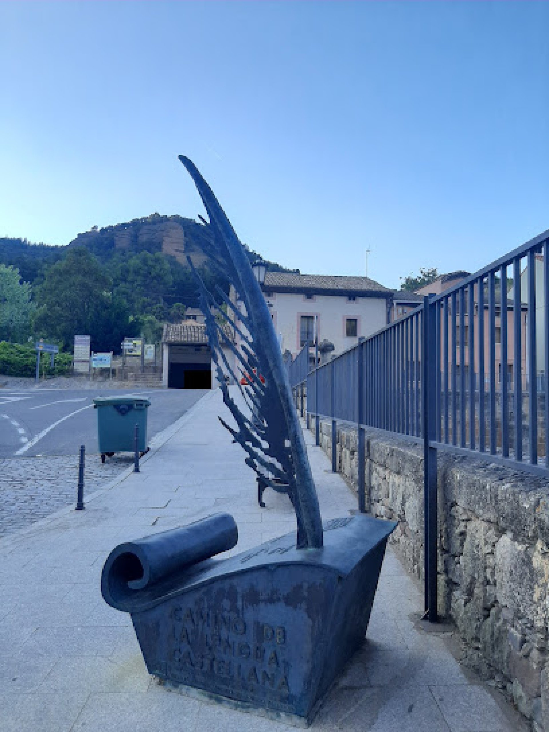 Experiencia fantástica: Evocadora escultura basada en el logotipo de la fundación del Camino de la Lengua Castellana, al que se ha añadido un enorme tintero y pergamino en el que están grabadas las seis localidades que forman parte de esta ruta: San Millán de la Cogolla, Santo Domingo de Silos, Valladolid, Salamanca, Ávila y Alcalá de Henares. En cada una de estas poblaciones existe una escultura idéntica marcando cada uno de los hitos de este itinerario cultural reconocido como tal por el Consejo de Europa.