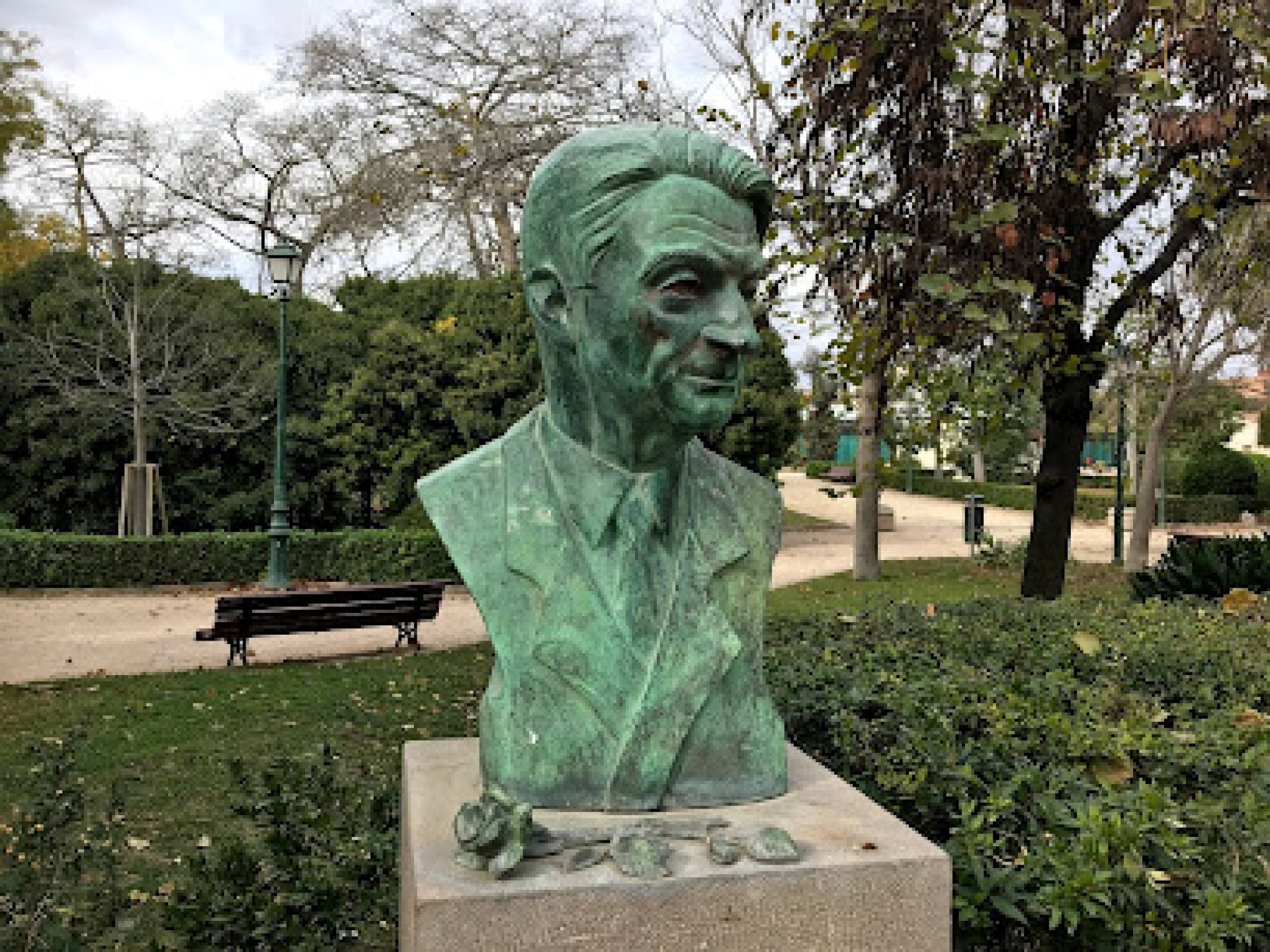 Experiencia fantástica: Busto de Paquito Domingo, en medio de los viveros, algo oculto pero visible a la vez