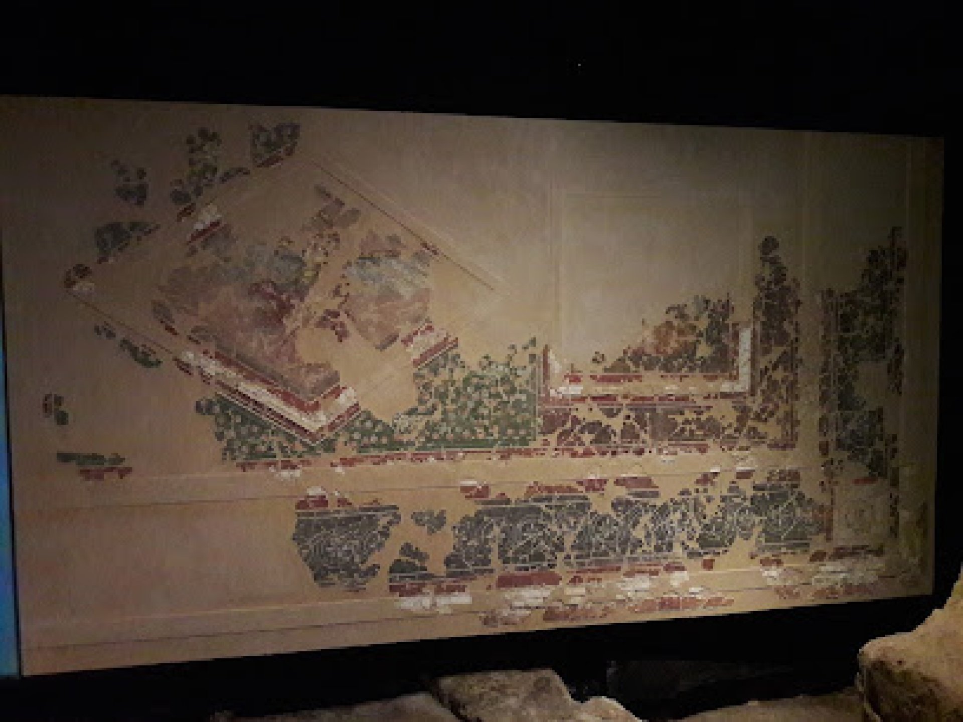 Experiencia fantástica: Barcelona esconde maravillas.. Esta casa romana del s.I dc aún conserva pinturas originales de la época. En un vídeo te explican brevemente la fundación de Barcino y la vida que en ella se hacia.. En una de las paredes se observa un fresco que ha sido restaurado. Éstas pinturas debido a la composición del material no perduran mucho en el tiempo por eso el hallazgo de éstos restos es tan importante.
