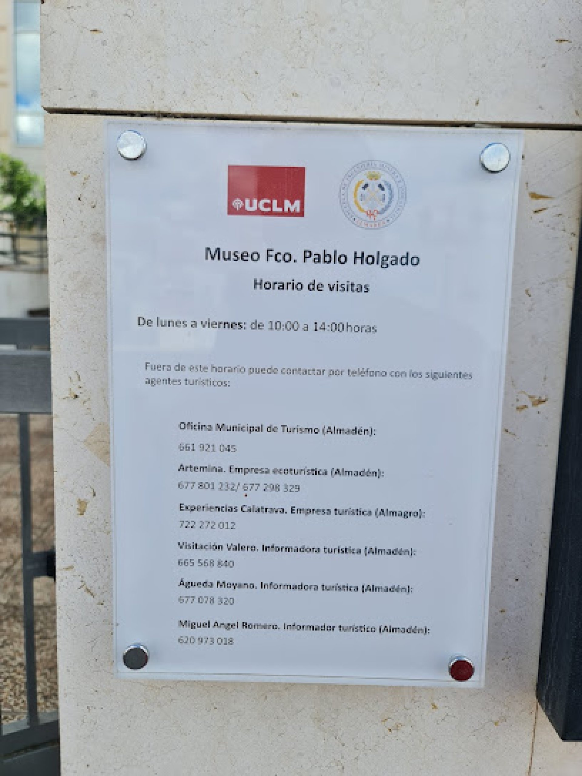 Experiencia positiva: Está abierto con el horario del Museo Francisco Pablo Holgado (L a V ,10:00 a 14:00),sólo hay que entrar y decir que vienes a visitarlo.Es gratis,y te hará pensar.