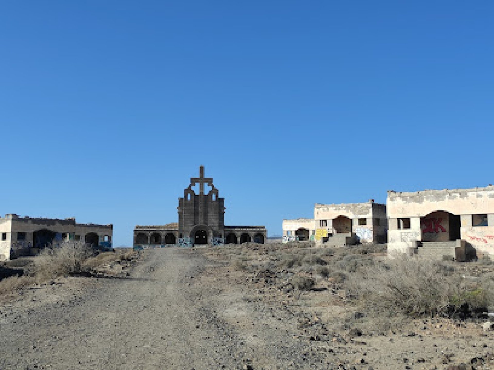 Experiencia fantástica: Este pueblo se suponía que era para pacientes con lepra. También en 1943, se empezó la construcción del Sanatorio Abades. Para esto, estuvo involucrado el famoso arquitecto José Enrique Regalado Marrero y se gastó mucho dinero. Pero durante la construcción, descubrieron que la enfermedad no es muy contagiosa, inventaron medicina, y los propios ciudadanos no querían aislar a los enfermos en otro lugar, así que la construcción se detuvo. Más tarde, el pueblo se utilizó como campamento militar. En los edificios más o menos preservados, vivían los militares, y el territorio de este lugar se utilizaba para varios entrenamientos, por ejemplo, para ejercicios de tiro. En 2002, un desarrollador italiano compró el lugar con el plan de crear un nuevo complejo turístico. Hasta ahora, este lugar le pertenece, pero dado que el Sanatorio Abades se considera un valor artístico e histórico, no es tan fácil hacer cambios. O más bien, se pueden hacer trabajos de construcción aquí, pero no se pueden demoler casas. Ahora este lugar parece una ciudad abandonada y a medio terminar, donde hay casas y una iglesia. Todos los edificios están pintados con graffiti. Hay basura dentro de ellos. Se ve, para ser honesto, espeluznante, especialmente la iglesia. Principalmente, las personas que se quedan cerca en complejos hoteleros caminan aquí. Además, algunos utilizan este lugar como pista para conducir motos de cuatro ruedas.