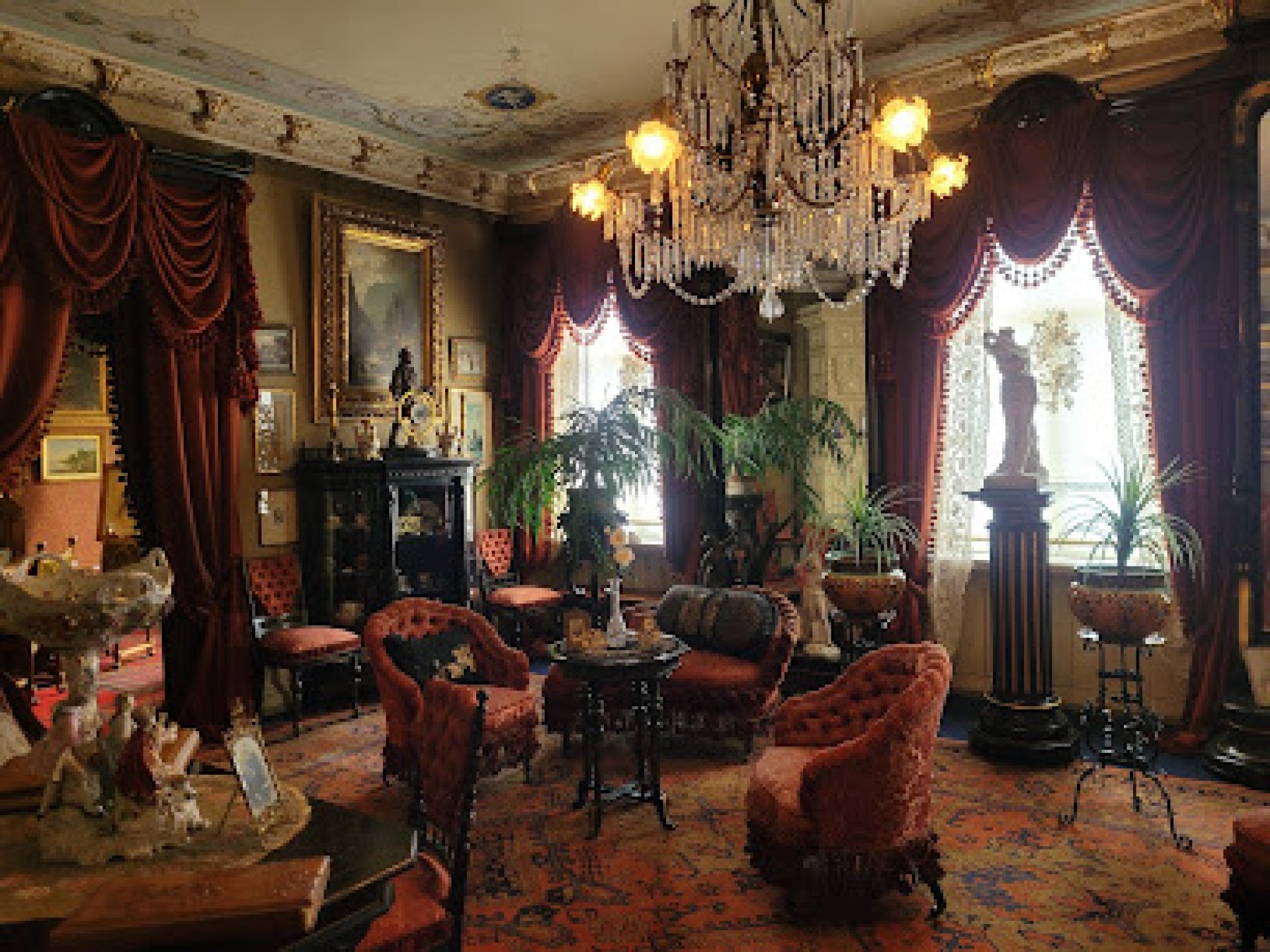 Por todas partes hay textiles con borlas, cintas y pompones; cortinas y draperías con drapeados asimétricos, muchos muebles tallados y objetos decorativos en todas las superficies. El apartamento es un testimonio de una sociedad que estaba bajo una fuerte transformación a finales del siglo XIX, donde la vida cotidiana era muy diferente a la de hoy.
