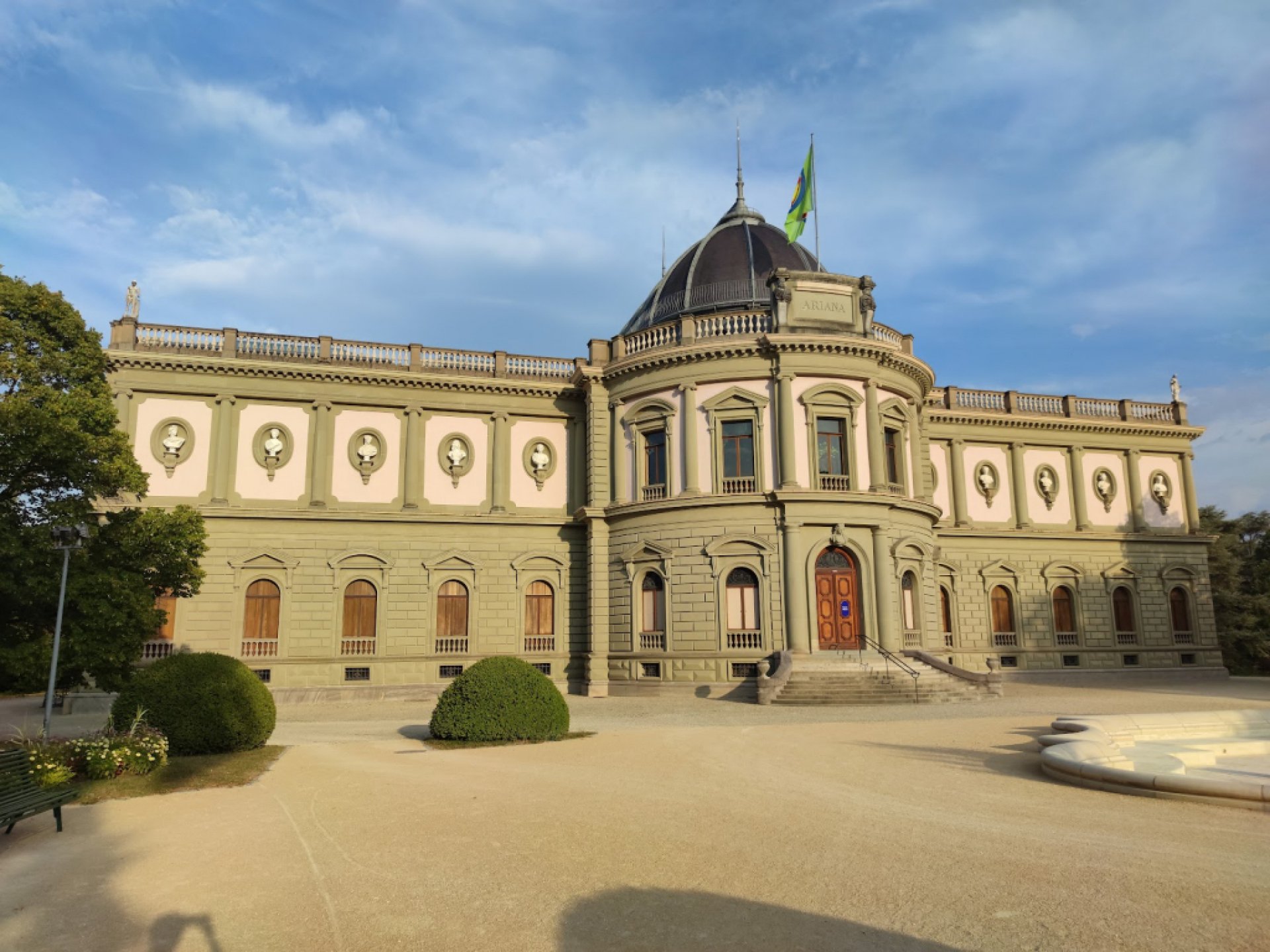 Experiencia positiva: A unos cientos de metros de la ONU se encuentra el Museo Ariana, un museo de cerámica y vidrio, ubicado en un edificio del siglo XIX: sobrio y refinado, rodeado de un agradable y sombrío parque. Las colecciones permanentes son gratuitas, pero también hay exposiciones temporales que son de pago.