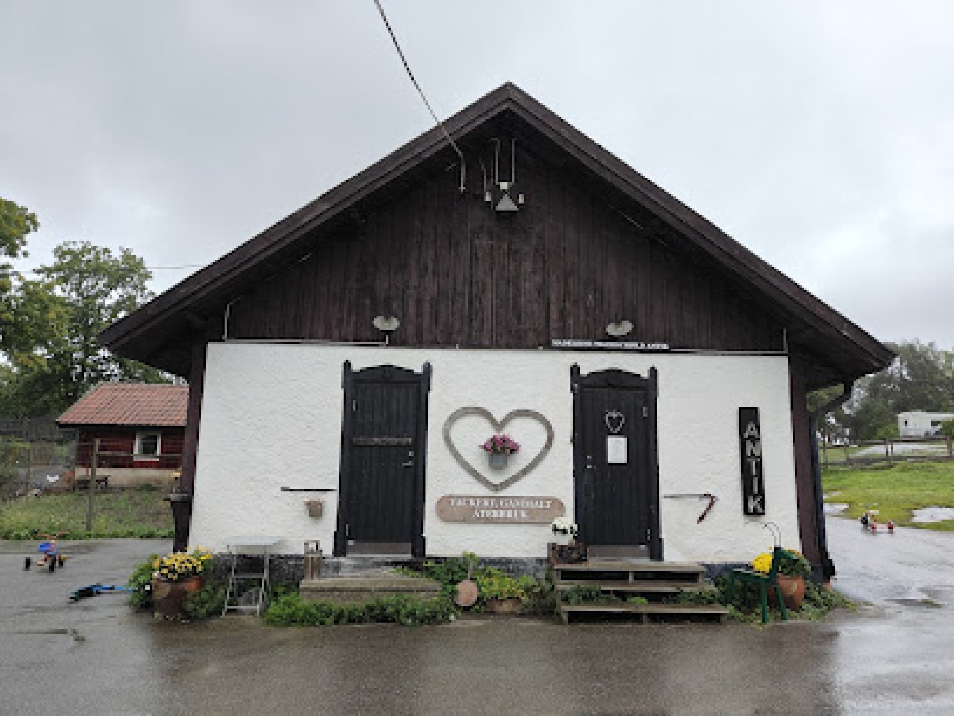 Experiencia positiva: Trevligt lantligt ställe med djur som barnen uppskattar att titta på. Vegetarisk mat i restaurangen var, pasta med tomatsås samt pumpasoppa. Bör finnas mer att välja på! Dessutom i dyraste laget. Mysig lokal och möjlighet att sitta ute.Hit åker man för miljön och naturen.Förstår dock inte relevansen av två hus med begagnade ting som inte verkar höra hemma där?