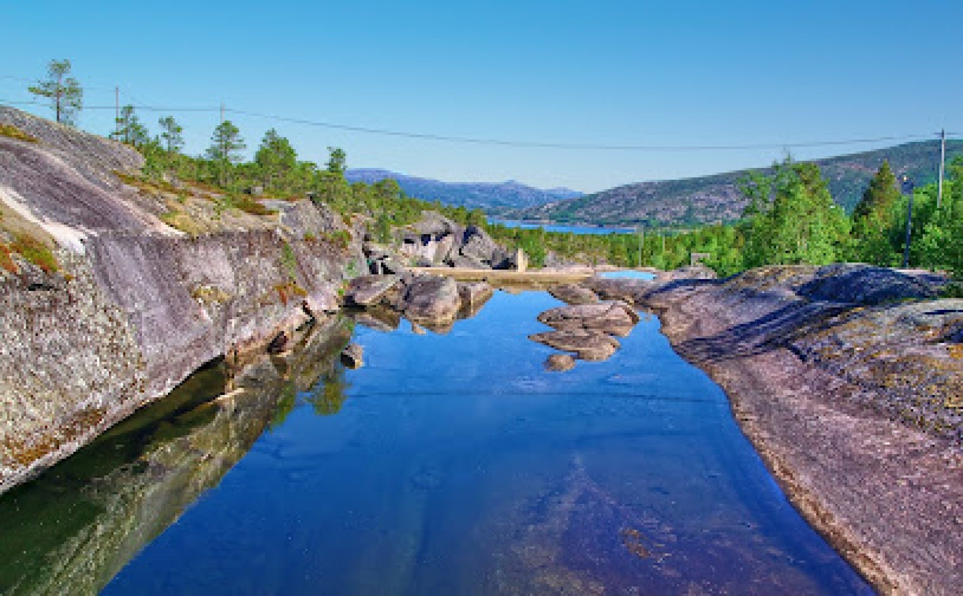 Experiencia fantástica: Hier muss man anhalten. Es ist hier wunderschön. Das Flussbett mit seinen Formen. Dazu die Lachstreppe. Und natürlich, die Rentier Zeichung aus der Steinzeit. Vorsicht bei Nässe, Rutschgefahr. Bei trockenen Steinen ganz prima. E-Autos können geladen werden. Wohnmobile können entsorgen. Kostenlos. Parkplätze. Wir haben es genossen das zu sehen.