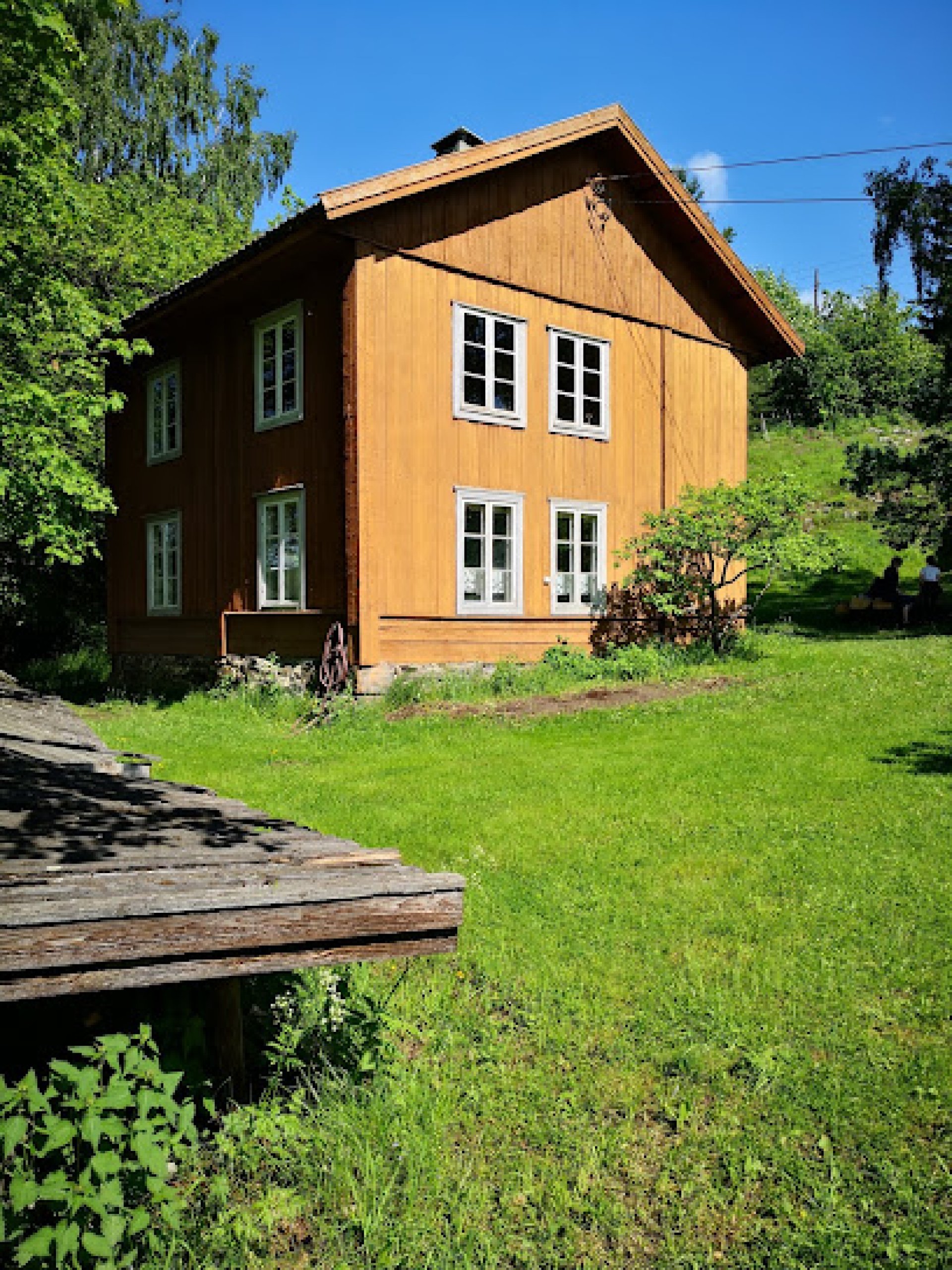 Experiencia fantástica: Et meget velholdt sted: hagen med frukttrær, og grønnsaker, og fint grøntområde. Bygningene vakre holdt av Fortidsminneforeningen. Lågen flyter stille men raskt( truende) nært huset. Et vakkert vakkert sted!