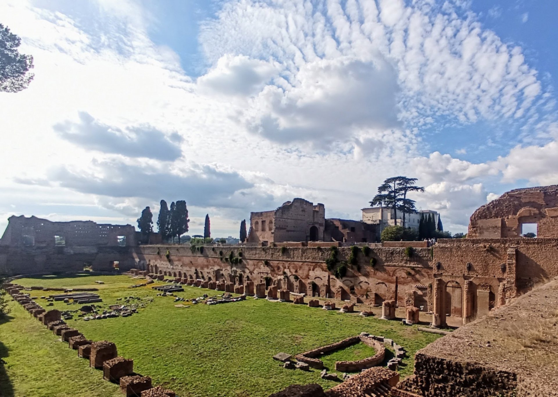 Experiencia fantástica: El Palatino es una legendaria colina romana donde Rómulo fundó la ciudad de Roma. En la antigüedad, fue un lugar para aristócratas y emperadores, que tenían aquí sus palacios y templos. En el Palatino, encontrarás las ruinas del más grande de ellos: el Palacio Flavio, así como la legendaria y pequeña casa de Rómulo. También es impresionante el Estadio Palatino, que mide 160 metros de largo y casi 50 de ancho. Las vistas son hermosas, se puede ver el Foro Romano y la ciudad, y también se puede observar el blanco monumento del Altar de la Patria. En la cima de la colina, los árboles brindan un poco de alivio en los días calurosos. Comienza tu visita al Foro Romano desde este lugar, la entrada está en el Arco de Tito, y luego es más fácil acceder y continuar explorando el Foro Romano. No se puede pasar por alto: es un punto obligatorio al visitar Roma; se siente la historia de la ciudad. Justo al lado del parque en la colina, hay una encantadora fuente de principios del siglo XVII. La entrada al Palatino se combina con el billete para el Foro Romano o se puede comprar en paquete con el Coliseo; nosotros entramos por la entrada del Arco de Tito, y la cola se reduce muy rápidamente, zapatos cómodos son necesarios.