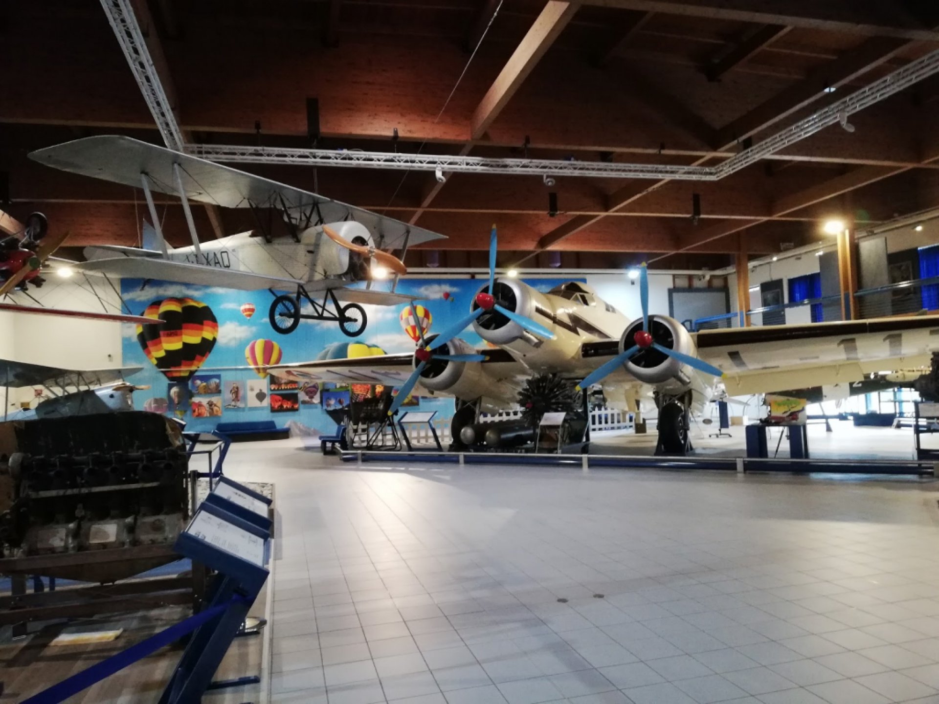 Experiencia fantástica: Aviones, hidroaviones, motores. Hay alrededor de veinte aviones de época en tierra y colgados. Un recorrido elevado con otros objetos de recuerdo completa la vista del museo. Cerca de los aviones hay un área de niños con sillas, mesitas, papel y colores en abundancia, con un tablón donde colgar los dibujos.